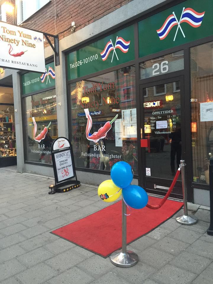 Välkommen till Tom Yum Ninety Nine. Här serveras en god Thaimat lunchbuffé & a la carte med fullständiga rättigheter.