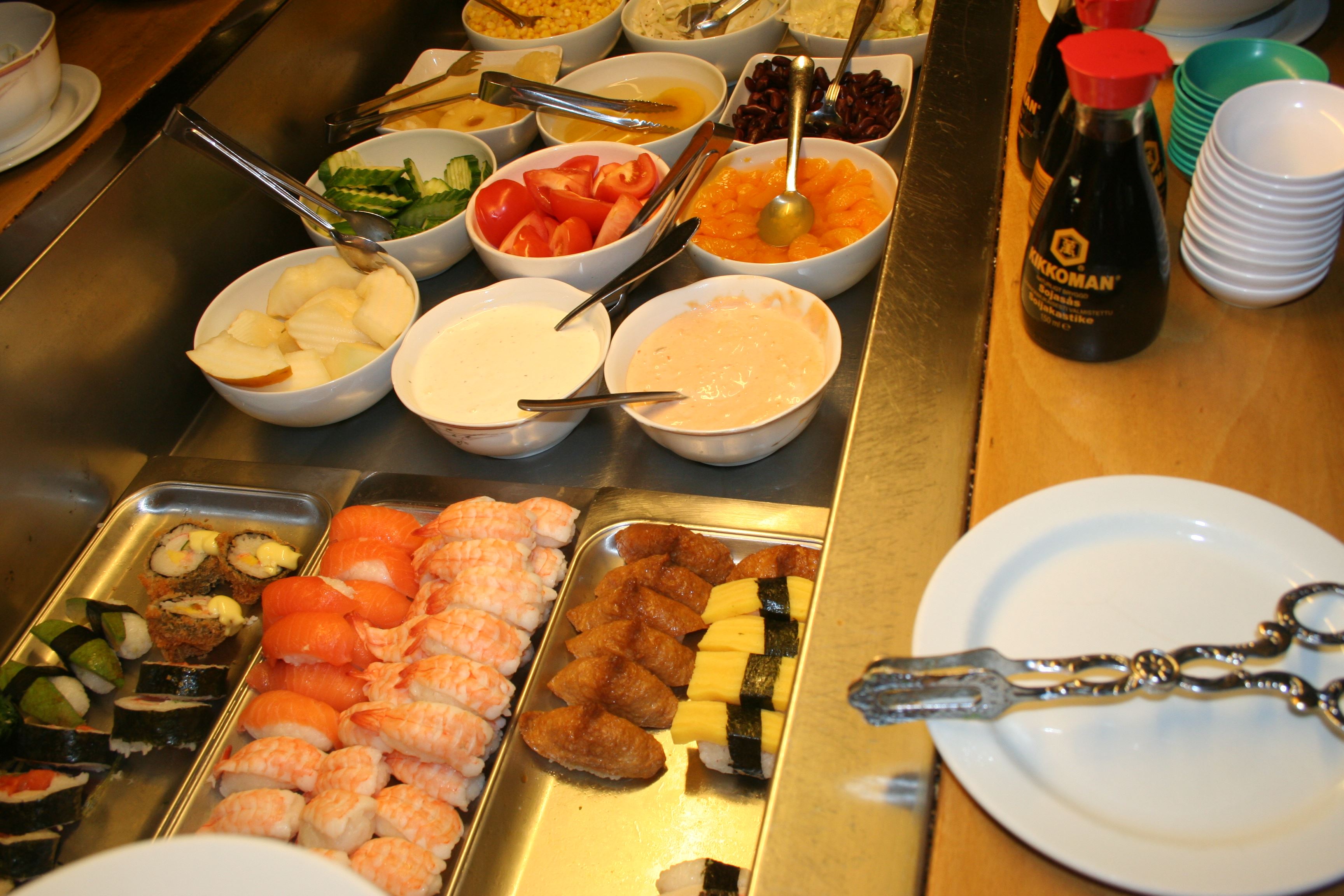 Här serveras Japanskt, Sushi, Thailändskt och Vegetariskt och mycket mer.