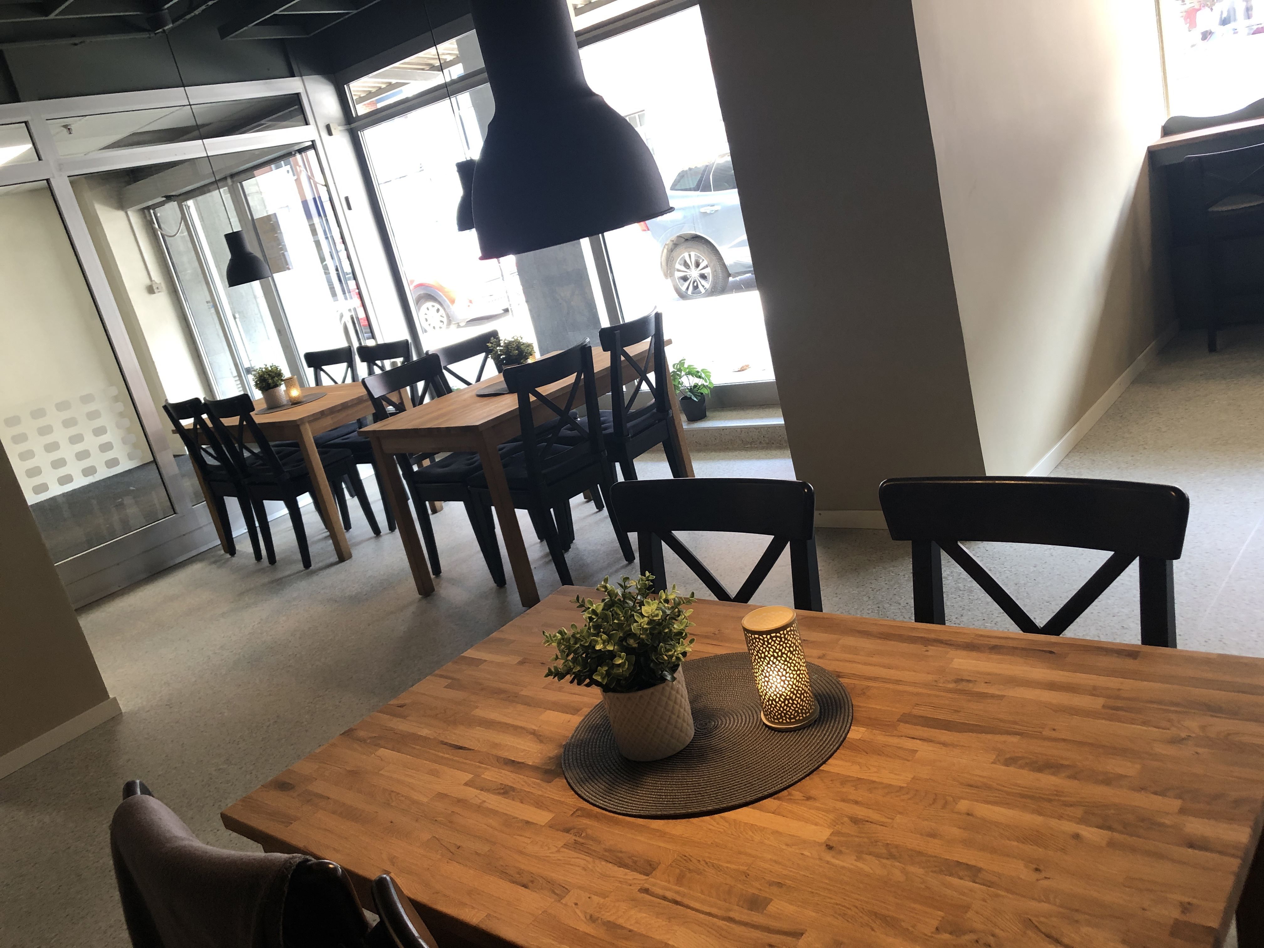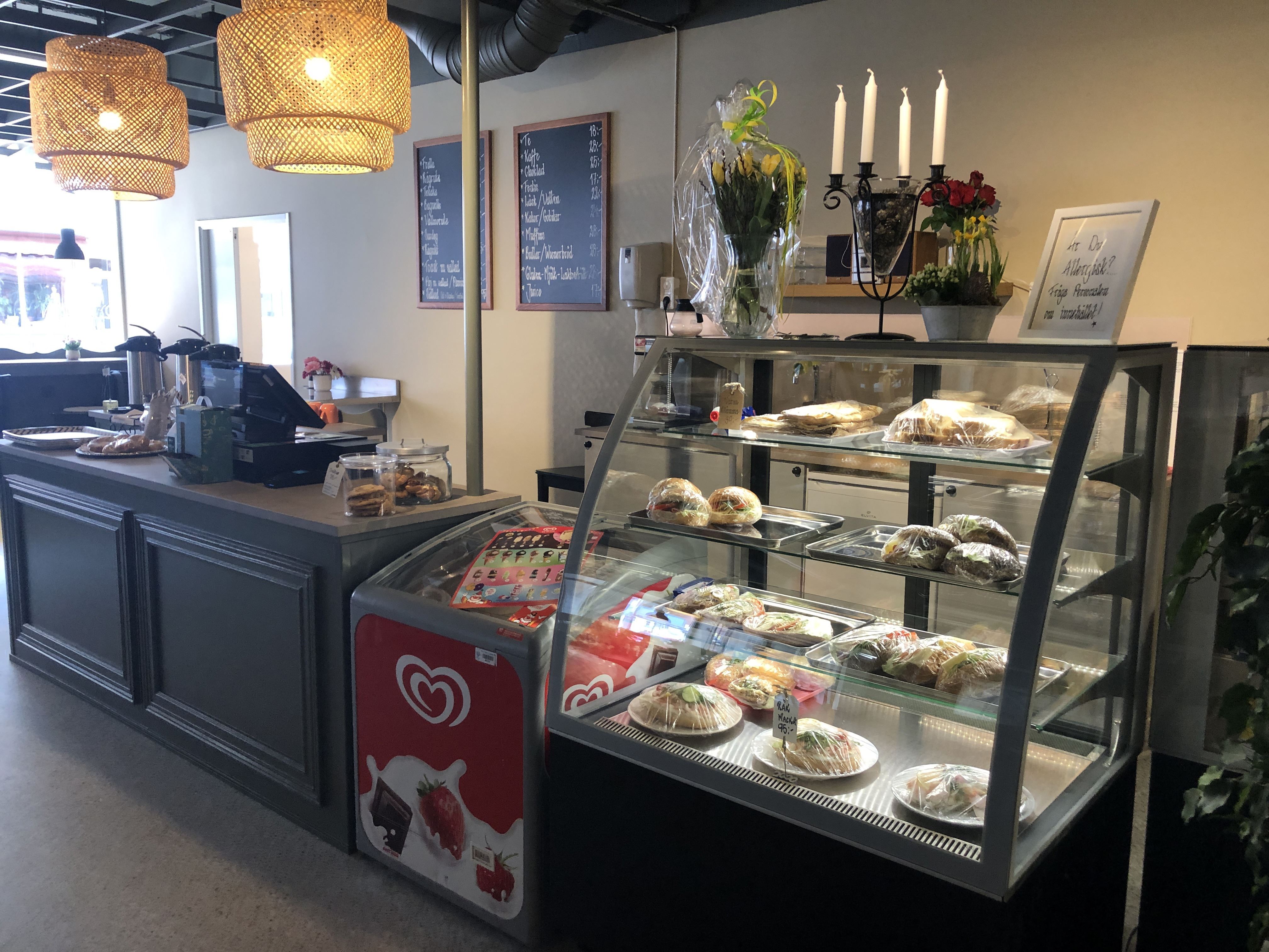 Café med servering av fika, smörgåsar, sallader, pajer, panini m.m.