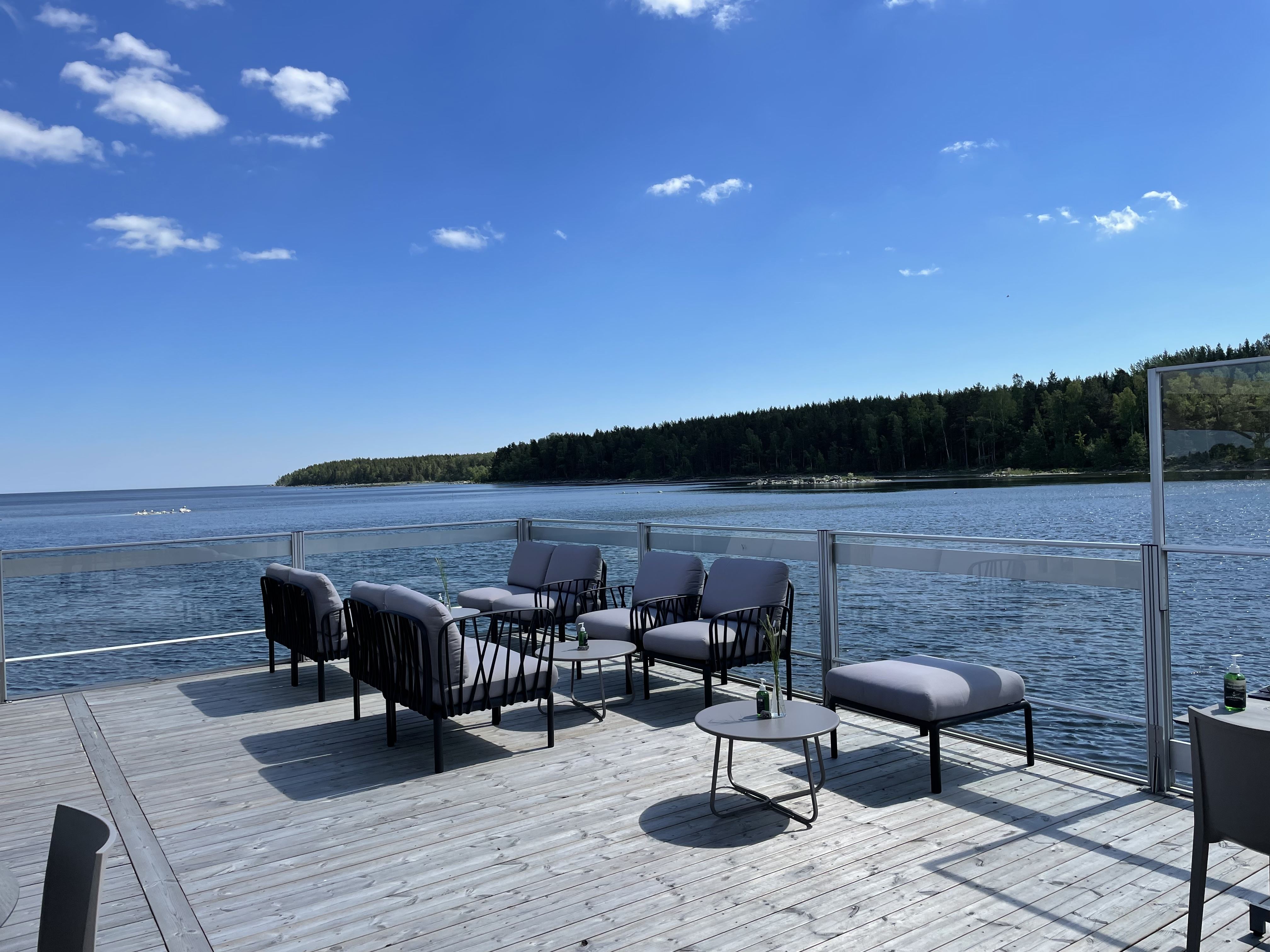 Här kan kan ni avnjuta god mat och god dryck med en underbar havsutsikt. Under säsong arrangeras även musik- och underhållningskvällar. I vår butik hittar ni alltid färsk fisk och lyxiga laxbaguetter att ta med. Varmt välkommen!