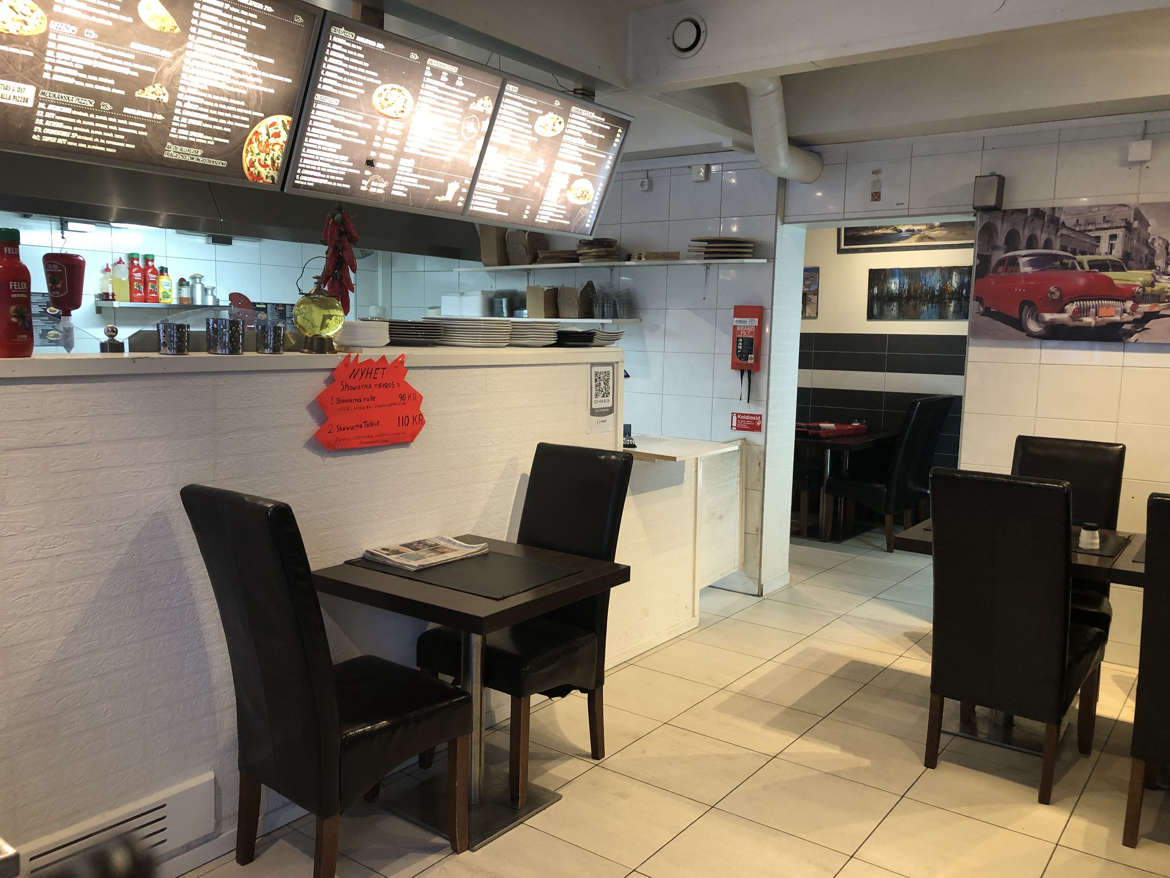 Kolgrill, pizza, sallad, kebab och hamburgare.