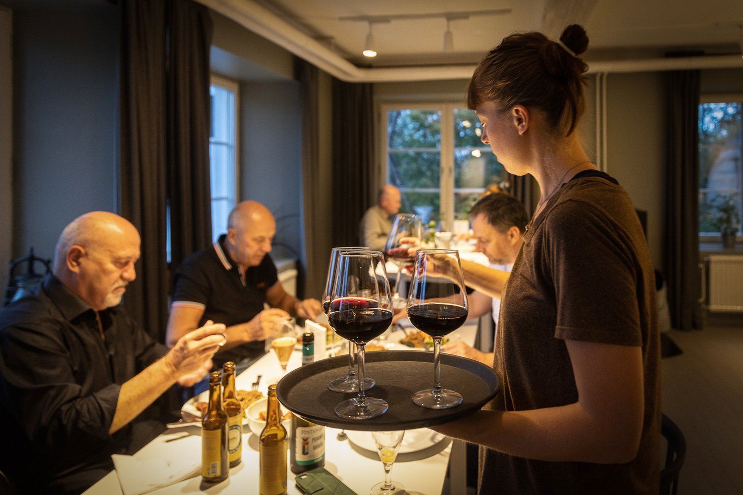 Varje dag (utom på tisdagar) serverar vi middag kl. 18.00: en trerätters måltid gjord på ekologiska och lokala råvaror. Vi är noga med att leta efter producenter i närområdet som vi vill samarbeta med och som vi står bakom deras sätt att producera mat. Detta resulterar i unika rätter med en historia bakom var och en av dem! Vi serverar vad Marieke kallar "hälsosam komfortmat". I middagen ingår vatten och kaffe/te; ytterligare drycker (alkoholhaltiga och alkoholfria) kan beställas. Priset för middagen är 500 SEK per person eller 300 SEK för barn. För ytterligare information om menyn, vänligen kontakta oss: booking@stilleben.nu.