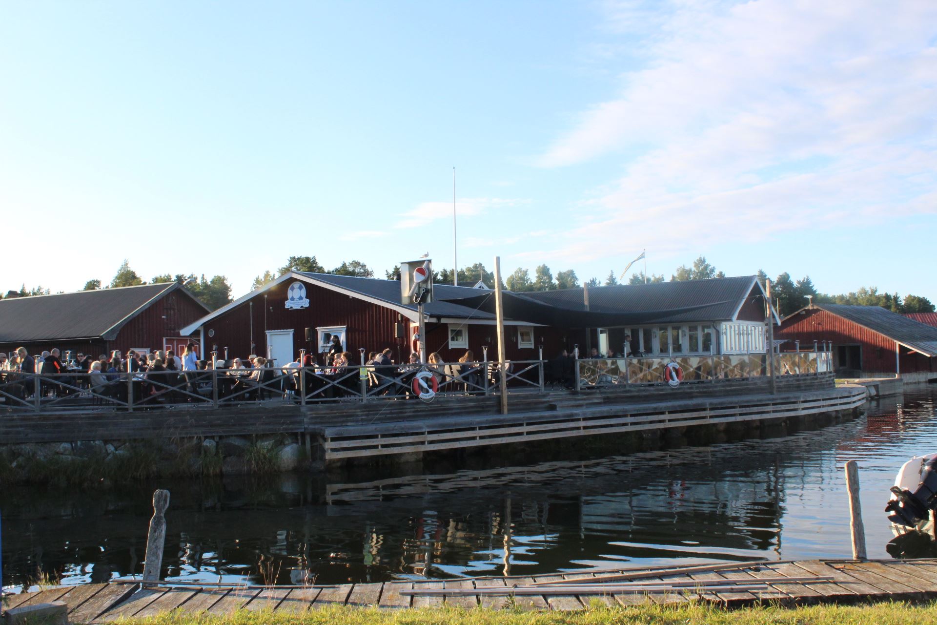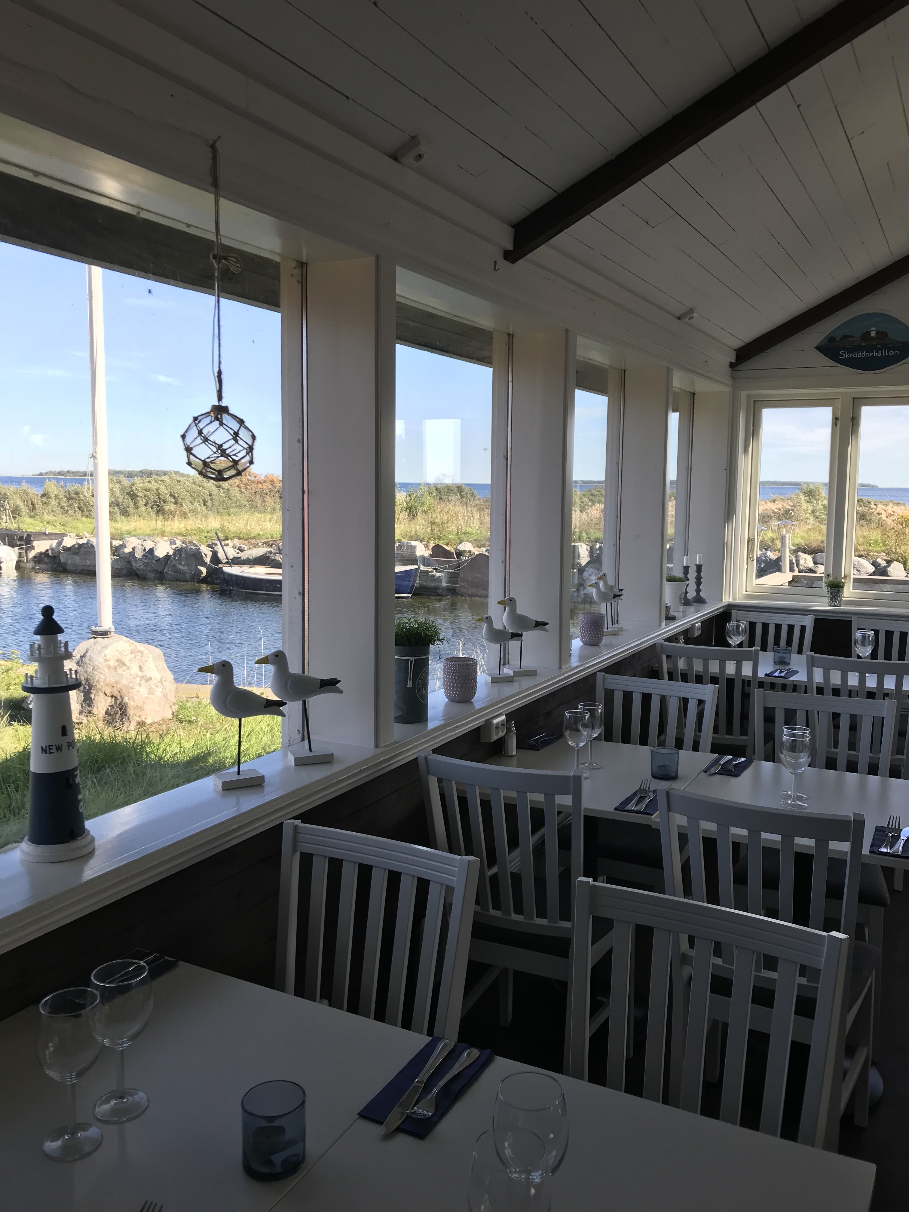Här finns sittplatser både inne och ute på den stora bryggan där man kan passa på att uppleva havsdoften. Åk bil, buss eller båt till restaurangen. Den perfekta platsen för bröllop, födelsedagar , och minnesstunder.