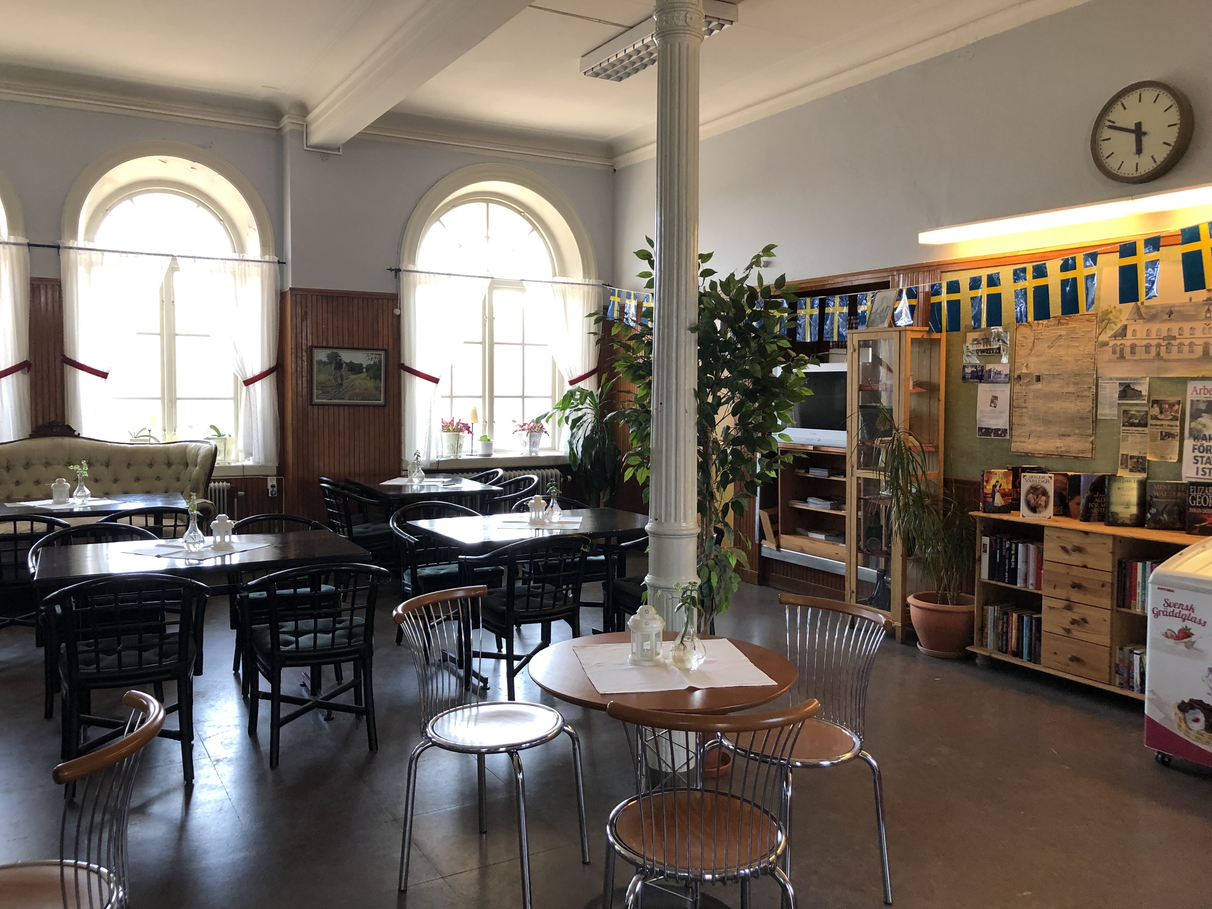 Passa på att ta en fika under tiden ni väntar på tåget eller när ni har vägarna förbi och njut av den härliga atmosfären i en gammal väntsal. Det går även att boka väntsalen vid möten eller annan stillsam sammankomst till ett bra pris inklusive kaffe, smörgås, fikabröd etc.