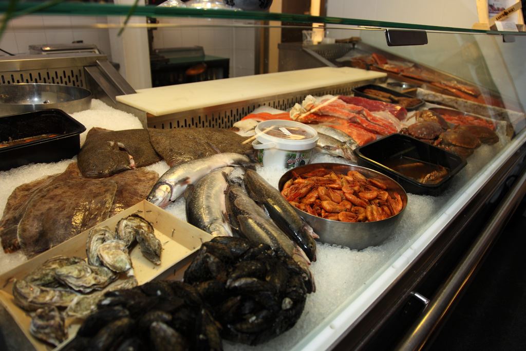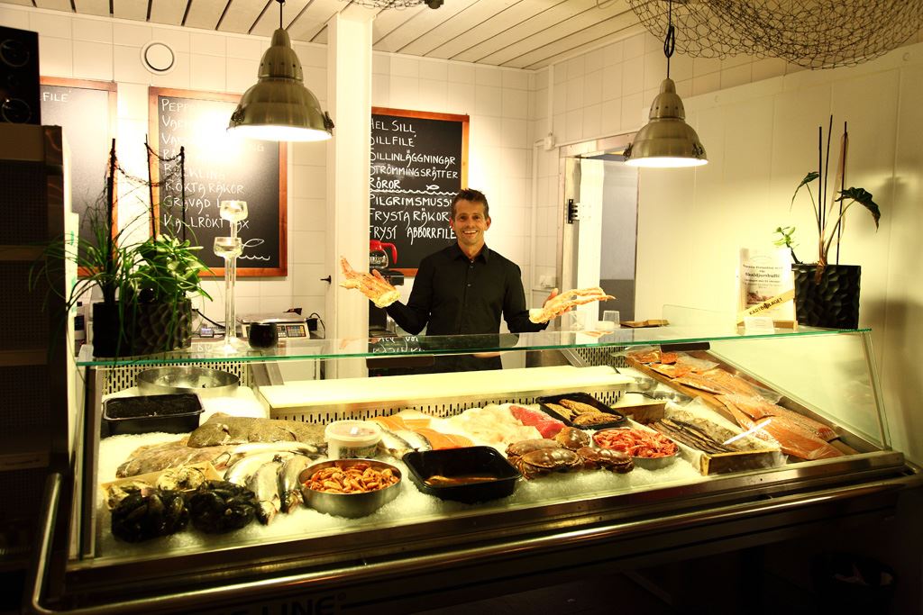Välkommen in till vår välfyllda fiskbutik där du hittar all sorts färsk fisk, rökt fisk, inlagd strömming, gravad och kallrökt lax, skaldjur, såser och röror mm.
