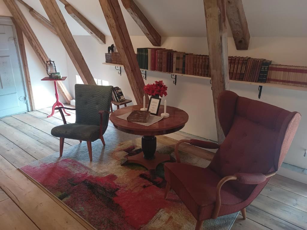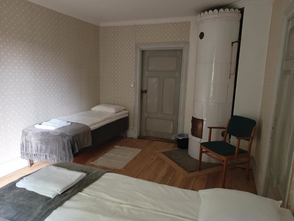 I varje rum finns ett fullt utrustat badrum med en dusch och tofflor. Här serverar en frukostbuffé och en kontinental frukost. Tillgång till gemensamt kök och som gäst kan du även koppla av i den gemensamma loungen. Avstånd till: Kungsbergets Fritidsanläggning ca 26 km Göranssons Arena ca 11 km Högbo Bruk ca 14 km Gysinge Bruk ca 50 km Forsbacka Bruk ca 18 km Boendet är inrett i "Riksdagmans villa" som är byggt 1884 av Anders Göransson som var släkt med grundaren av Sandvik AB, Göran Fredrik Göransson.