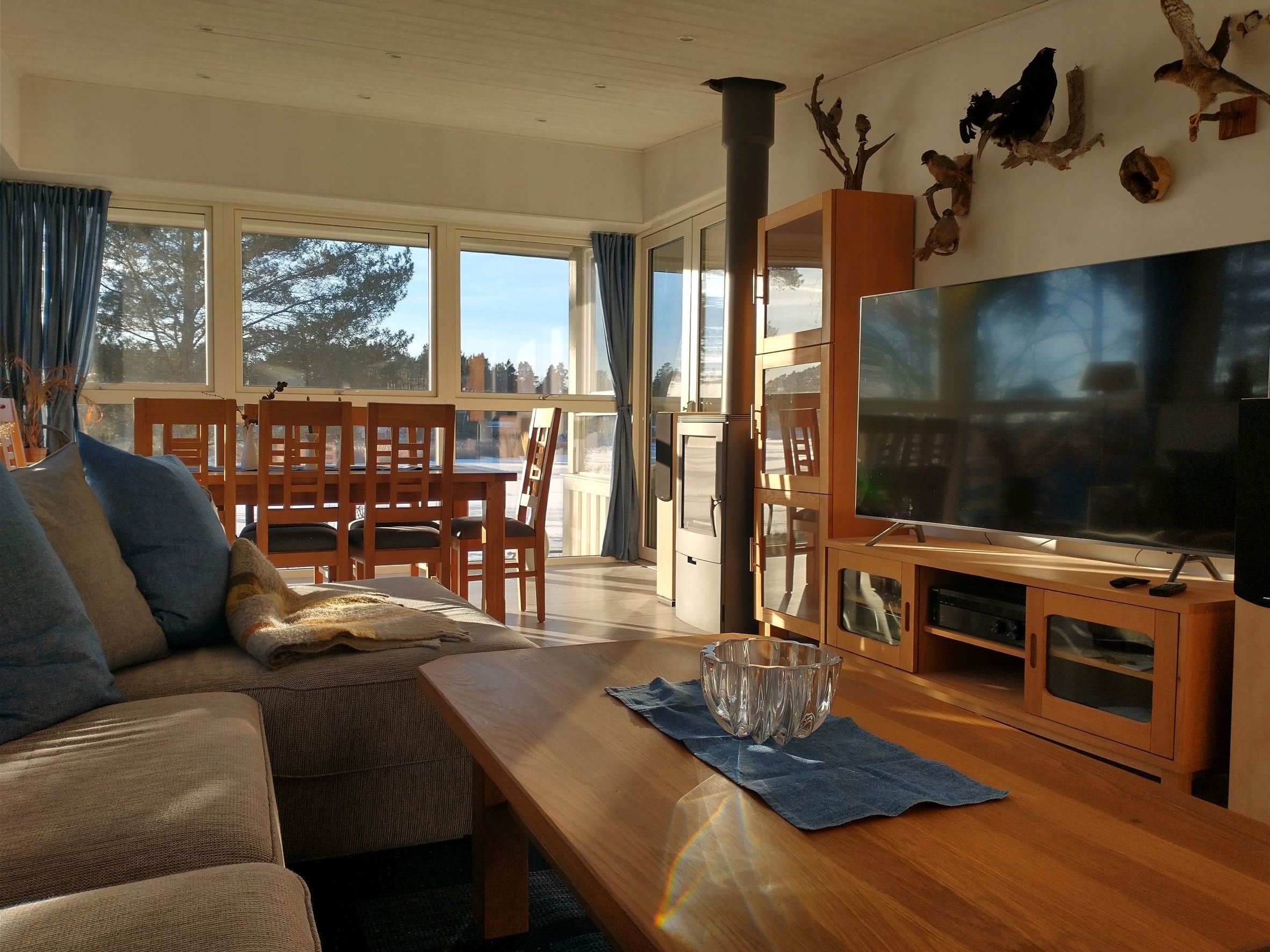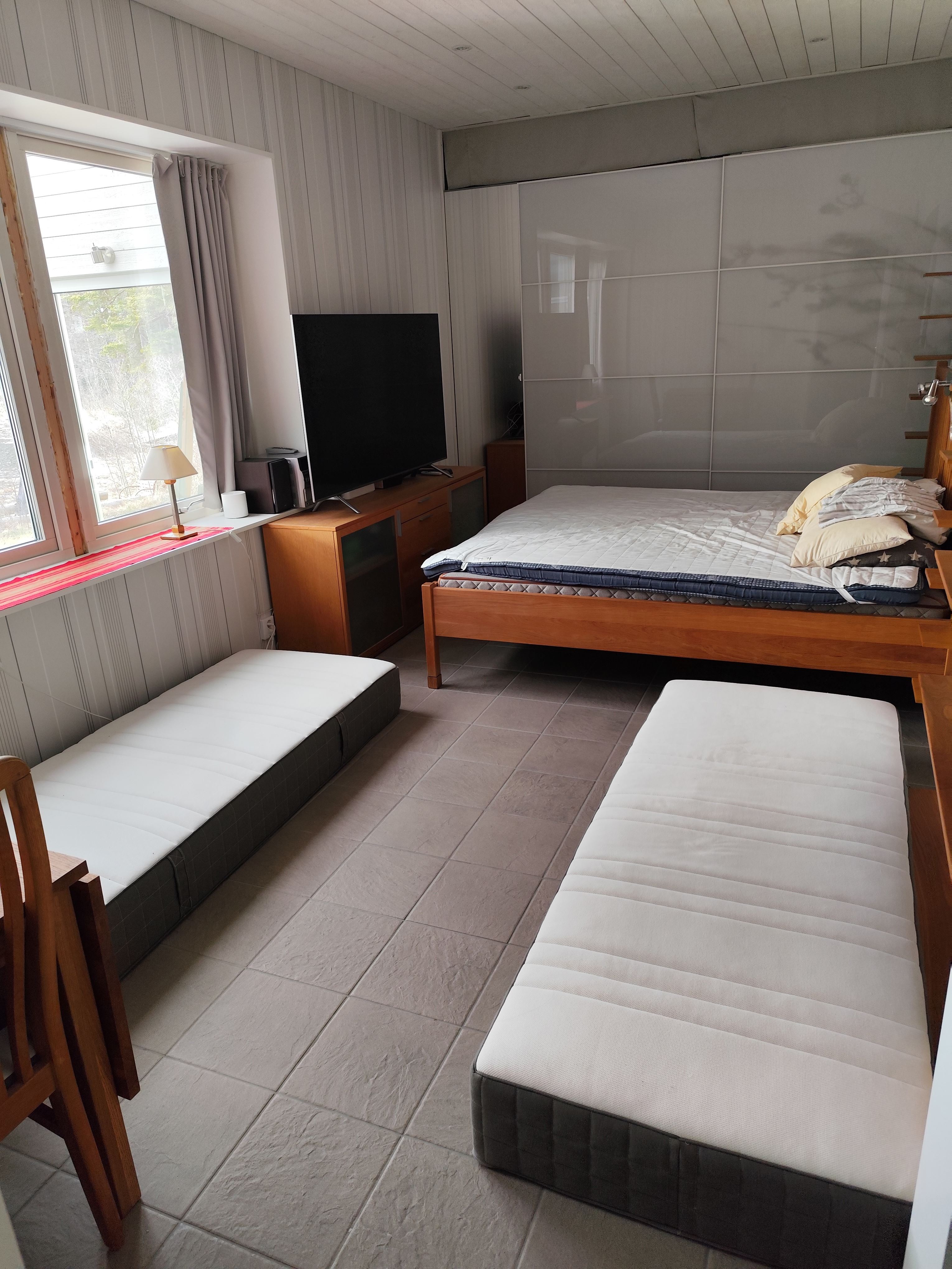 Huset håller året-runt-standard och erbjuder gott om plats för både umgänge och avkoppling. Två sällskapsrum med braskaminer skapar en trivsam känsla oavsett årstid, och huset har fyra sovrum med totalt sex ordinarie bäddar samt möjlighet till fyra extrabäddar. Under sommaren kan även en friggebod med bäddsoffa hyras till för ytterligare två personer. Ute hittar du flera ytor att njuta av – en stor möblerad badbrygga, en inglasad veranda och ett rymligt uterum gör att du kan vistas nära vattnet oavsett väder. Tomten har soligt sydvästläge utan insyn från grannar. Det finns ett utekök med gasolgrill, diskbänk och kyl, samt en vedgrill i form av bålpanna. I trädgården ligger även ett lusthus med sjöutsikt – en fridfull plats för morgonkaffe eller kvällsro. I närområdet finns mycket att upptäcka: Furuviksparken ligger på gångavstånd, liksom Harnäsbadet med hopptorn och en barnvänlig strand. För den fiskeintresserade finns goda möjligheter i Trösken (fiskekort krävs), och ytterligare vatten i närheten. Gävle ligger bara 12 km bort och nås smidigt med tåg eller buss – hållplatser finns inom 1 km från huset. 150 kvm året-runt-hus på sjötomt Fyra sovrum (2 dubbelrum, 2 enkelrum) + 4 extrabäddar Friggebod med bäddsoffa kan hyras till sommartid Två allrum med braskamin Inglasad veranda (18 kvm) och uterum (24 kvm) Stor möblerad brygga och året-runt-bubbelpool Roddbåt (motor kan hyras till), två kanoter, flytvästar Utekök med gasolgrill, kyl och diskbänk samt bålpanna Lusthus vid vattnet Harnäsbadet 150 m, barnvänlig sandstrand 50 m Furuviksparken 1 km, Gävle 12 km Buss 600 m, tågstation 1 km Viktigt, notera att husdjur ej är tillåtet pga allergisanering.