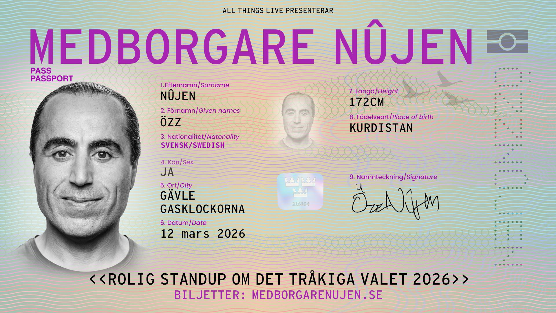 I standupföreställningen “Medborgare Nûjen” tar Özz Nûjen sig an frågan vad det egentligen betyder att vara medborgare i dagens Sverige.