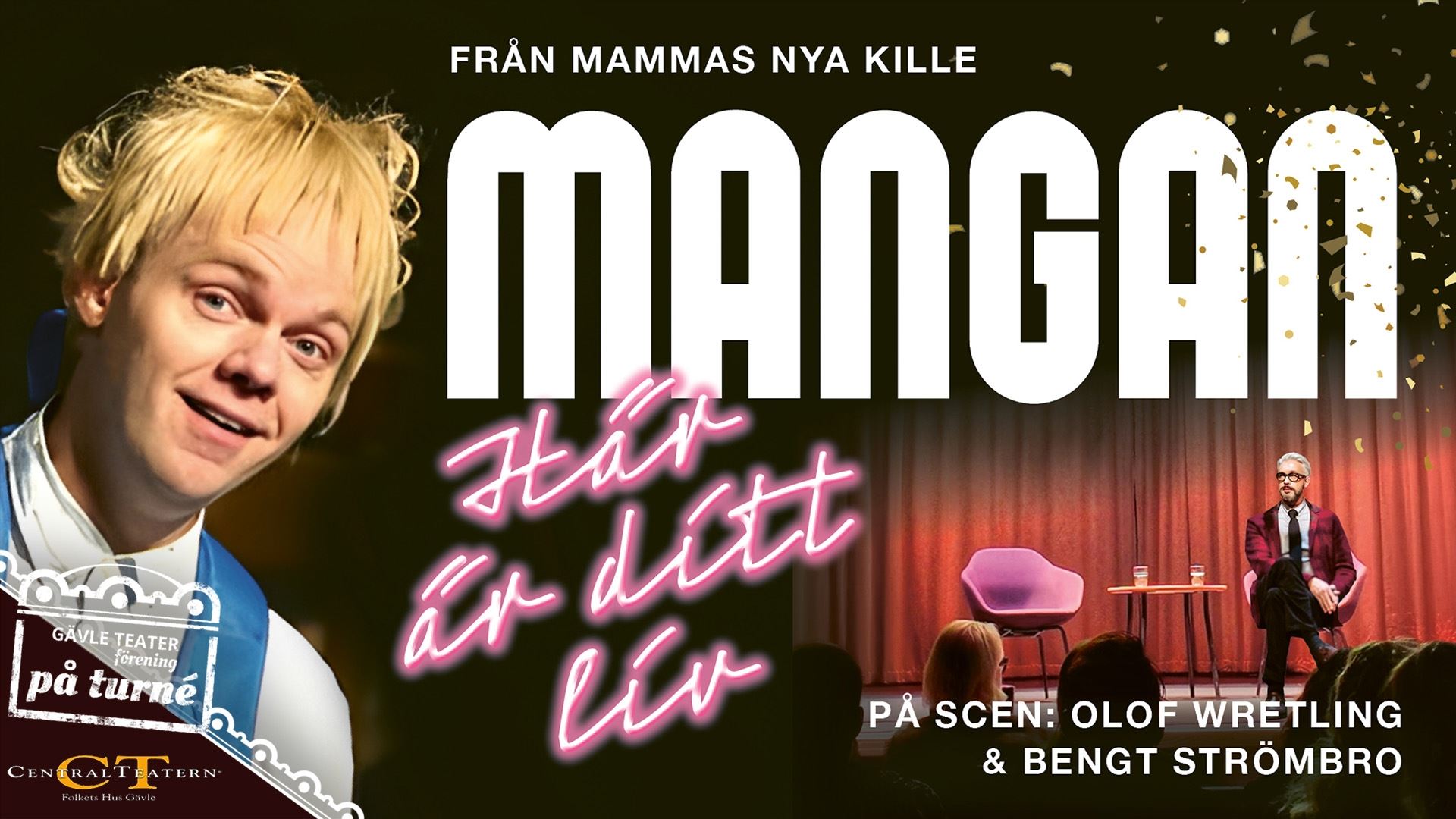 Det legendariska humorprogrammet Mammas Nya Kille fyller 20 år! Bengt Strömbro och Olof Wretling tar med Mangan och andra Wretling-figurer ut på Här är ditt liv-turné. Vi får följa Mangans makalösa livsresa – bland annat från när han åkte inlines hela vägen mellan Treriksröset och Smygehuk utan att stanna, till när han valde att leva skärmfritt på ett kalfjäll för att bli av med sitt mobilberoende. Vi får också höra om samhällstjänsten han dömdes till på en bondgård efter att ha fildelat “romcoms”, samt om hans senaste storslagna äventyr: Mangan i djungeln, en överlevnadskurs i Tarzans fotspår. Under kvällen dyker fler välkända gäster upp som Peter Nilsson, Shanti och inte minst Katla. Det blir en kväll fylld av minnen, överraskningar och Mammas Nya Kille-humor. Detta vill du inte missa! Medverkande: Olof Wretling och Bengt Strömbro