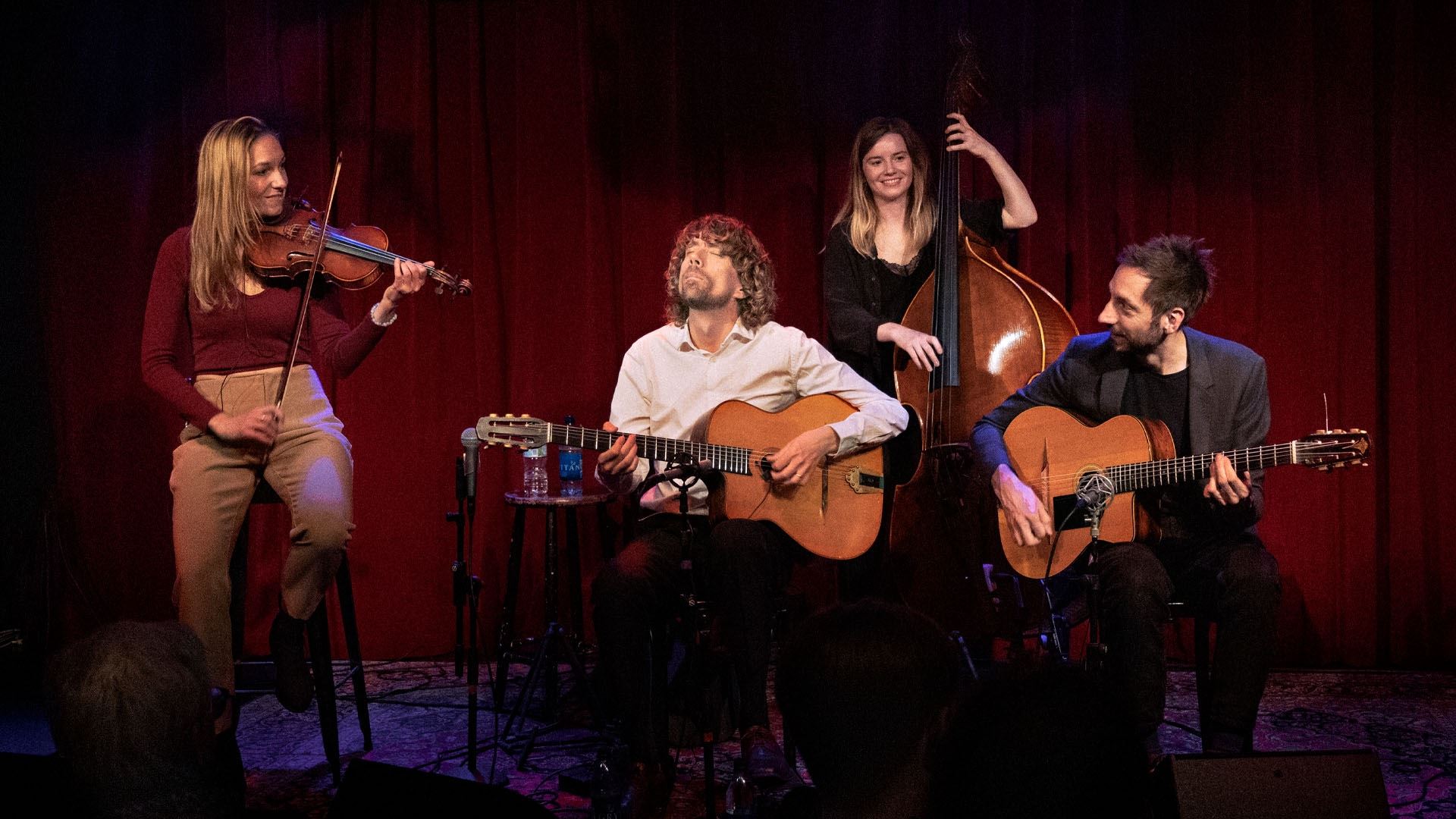 Det internationella bandet Swing 23 är en frisk fläkt inom "gypsy jazz-världen". Swing 23 är en extraordinär kvartett som för traditionen från Django Reinhardt vidare in i nutiden och skapar ett unikt internationellt sound. I maj 2025 spelade bandet in sitt debutalbum med det svenska skivbolaget Prisma Music Group. Kärnan är musiken av Django Reinhardt & Stéphane Grappelli, berikad med klassiker från American Songbook och egna kompositioner. Resultatet är energisk, elegant och högst modern jazz som hedrar sina rötter samtidigt som den ständigt förnyar sig. Swing 23 består av musiker från fyra länder – Frankrike, Sverige, Schweiz och Tyskland. De är två kvinnor och två män, en sällsynt blandning inom jazz som skapar en rik symbios i en välbalanserad kvartett där harmoni, ömsesidig respekt och gott humör tjänar musiken. Dessa fyra njuter av att spela tillsammans, och det märks! Långt ifrån att bara återge ett repertoar, tar varje medlem med sig sin historia och sina influenser in i mästerliga och innovativa improvisationer, vilket förnyar stilen med varje stycke – en mycket samtida jazz. Redan från första känner man passionen, respekten och spontaniteten som präglar deras musik. Swing 23 representerar en ny generation "gypsy jazz", modern, internationell och full av liv – en inbjudan att uppleva den tidlösa svängens anda på ett helt nytt sätt. Musikerna: • Eva Slongo – En klassisk skolad konsertviolinist och fantastisk virtuos som ständigt tänjer på gränserna för jazzfiol. • Julia Hornung – En central figur i återupplivandet av gypsy jazz i Tyskland, som tillför gruppen en lätt och glädjefylld swing. • Gustav Lundgren – Grundare av Hot Club de Suede, känd som den främsta tolkaren av Django Reinhardts musik i Sverige. • Edouard Pennes – En framstående gitarrist på den franska jazzscenen, känd för sin lekfulla och uppfinningsrika stil.