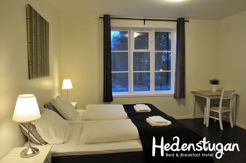 Välj någon av de cykelturer sim vi föreslår på våra kartor 1 - Gåsholmaturen - 33 km 2 - Trödjeturen - 57 km 3 - Vittersjöturen - 37 km 4 - Viksjöturen - 29 km 5 - Axmar/Trollharen turen - 42+16 km 6 - Norrsundet-turen - 22 km du kan också skapa egna turer på de vägor som kartorna visar dig. Välj de smala vägarna om du vill undvika biltrafik och upptäcka fin skog och sjöar. Pris: SEK 795,- kr. per person inkl. moms. ( Tillägg för enkelrum: SEK 350,- ) Välkommen att kontakta oss via telefon (0297-10755) eller via e-post. Detta ingår i paketet: I paketet ingår cykeluthyrning för ett dygn samt kartor, (övrig utrustning såsom barnsadel, vagn för barn tillkommer och måste förbokas). En natt i Hedenstugan Bed & Breakfast Hotel (del i dubbel- eller 2bäddsrum) inkl. Frukost, sängkläder och handdukar ingår. Längd: 2 dagar, 1 övernattning Deltagare: Från 1 pers upp till 4 pers. Fler personer i överensstämmelse med Hedenstugan B&B Hotell Säsong: Cykelsäsongen, från maj (så länge cykelleden är tillgängligt med tanke på snö och kyla). Tillval: Uppgradering är möjligt t.ex. fisketur, vandringstur, grillning på Hådells Gammalskog, kanothyra mm. Alla tillval i överensstämmelse med Hedenstugan B&B Hotell. Tips runtomkring: Vandring, fågel- och viltåskådning, paddla kanot, lerduveskytte, historiska sevärdheter o.s.v.