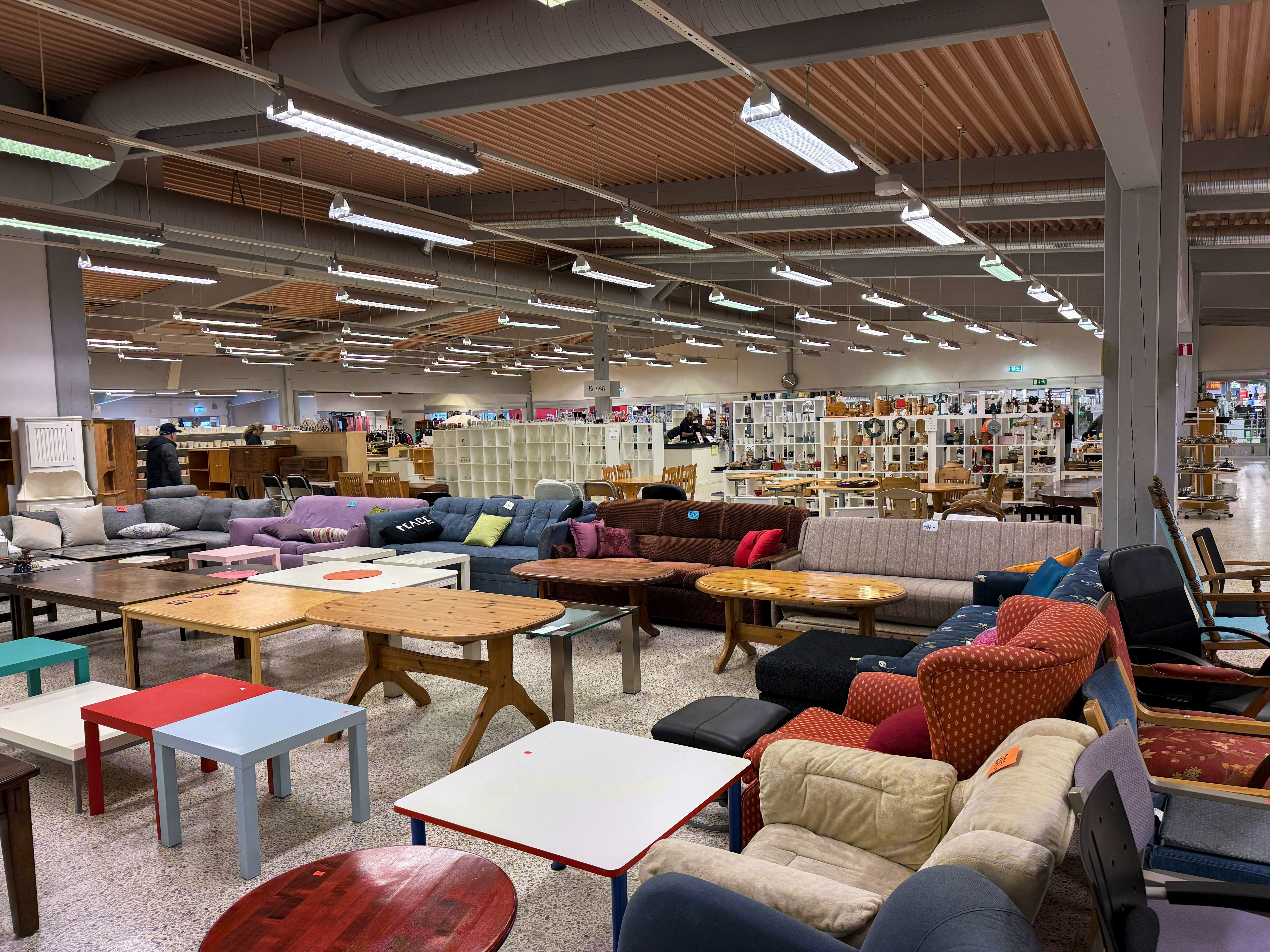 I butiken på ÅNYO säljer vi bland annat möbler, porslin, kläder, böcker och annat som lämnats in av privatpersoner, föreningar och företag för återbruk.