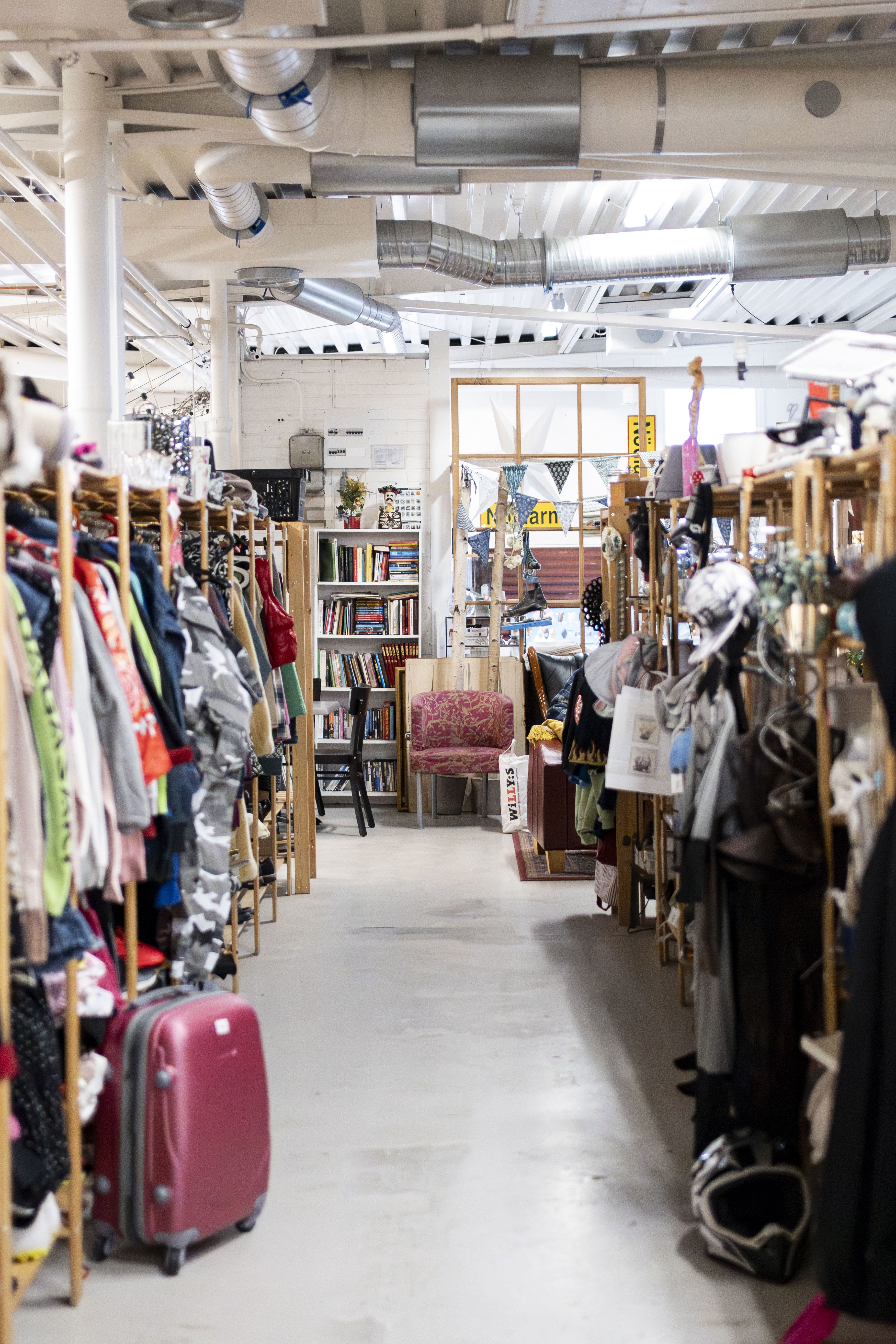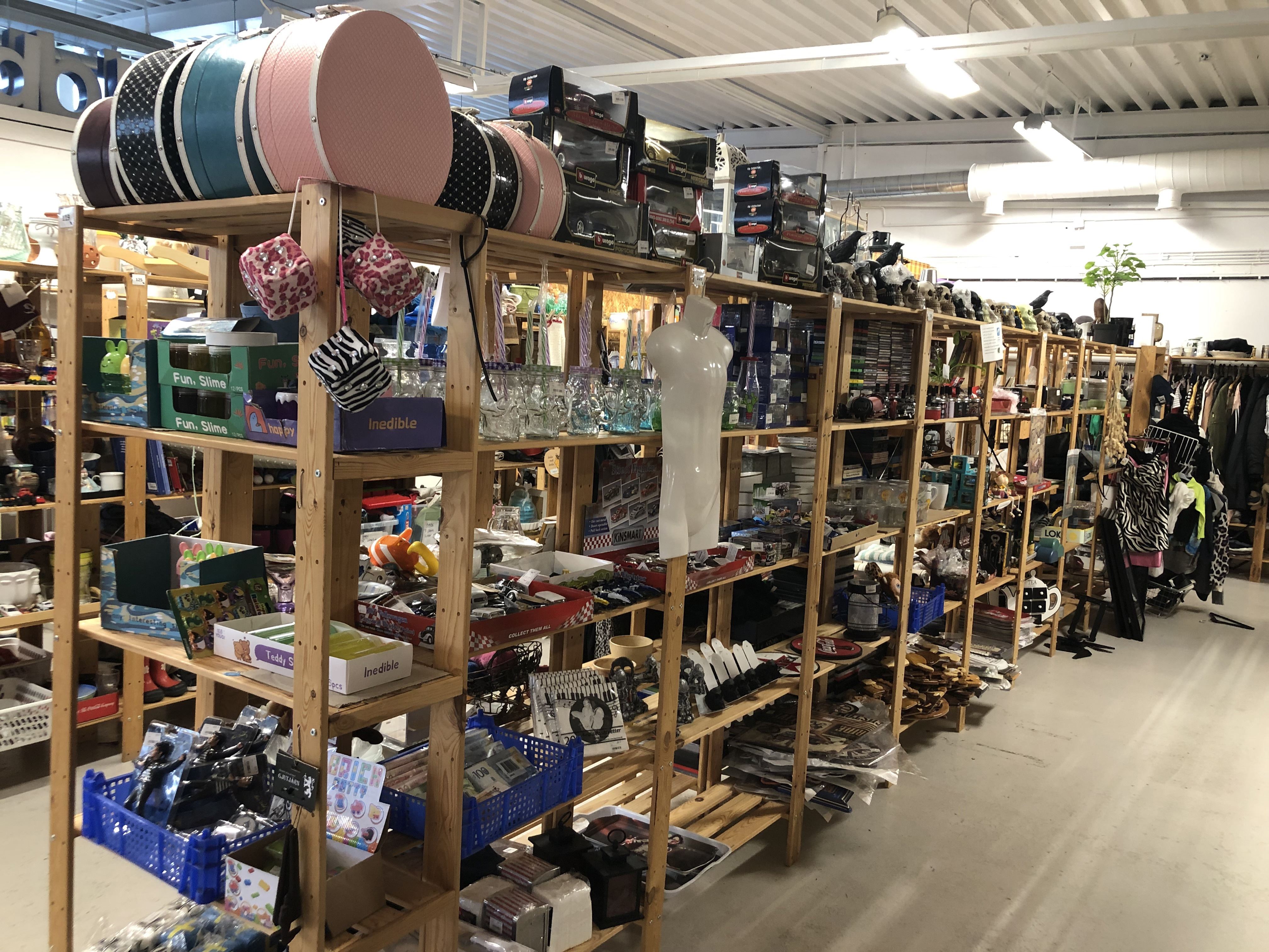Inlämningsloppis där privatpersoner säljer alla möjliga saker och kläder.