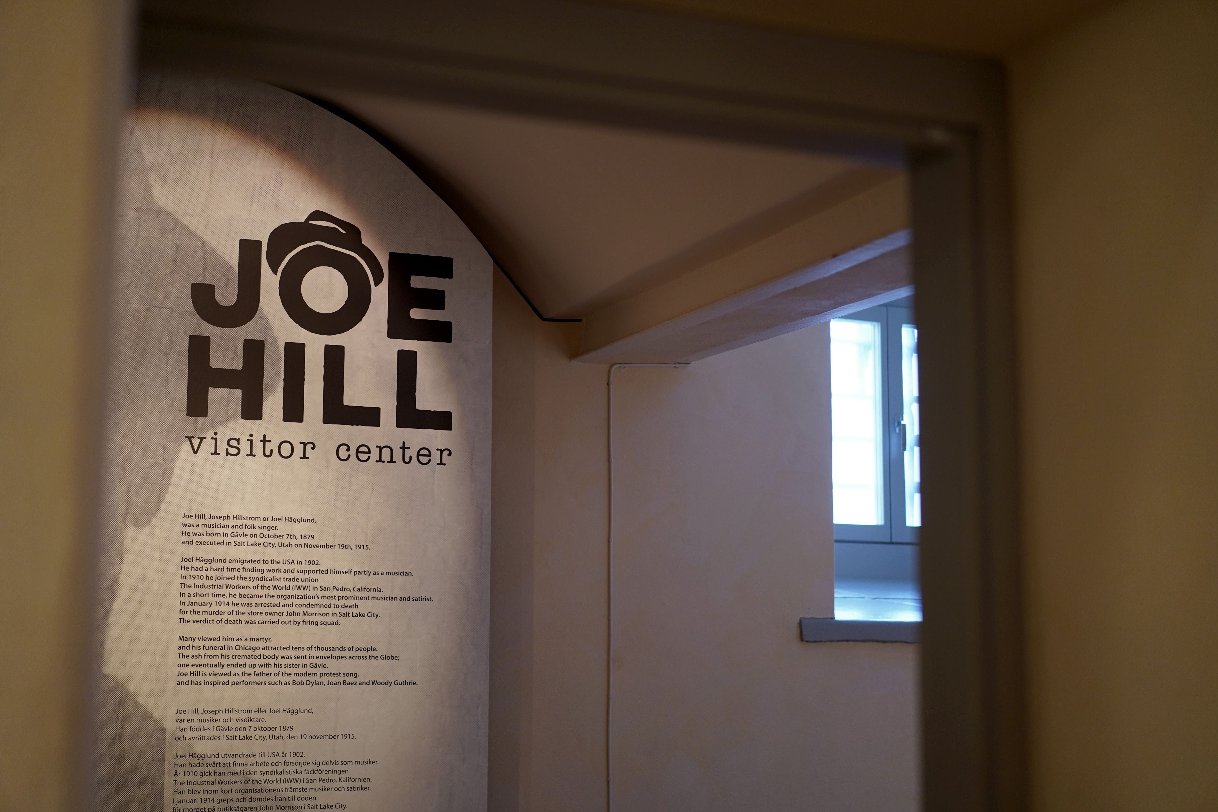 Joe Hill har kallats den moderna protestmusikens fader. Bob Dylan, Woody Guthrie, Joan Beaz och Bruce Springsteen är några av alla artister som inspirerats av honom. Joe Hill föddes och växte upp i Gävle som Joel Hägglund, innan han emigrerade 23 år gammal till USA och blev Joe Hill. Gävle var hans stad, här fanns hans familj, hans skola och hans första jobb. Här finns gatorna han sprang runt på som barn. På Joe Hill Visitor Center börjar ditt möte med Joe Hill och hans Gävle. Här får du nycklarna för att söka dig ut och följa hans spår i staden. Vad finns kvar från hans tid och hur syns han i sin barndoms stad Gävle? Joe Hill Visitor Center har ingen egen personal, utan hålls öppet av Sveriges Fängelsemuseum som finns i samma byggnad.