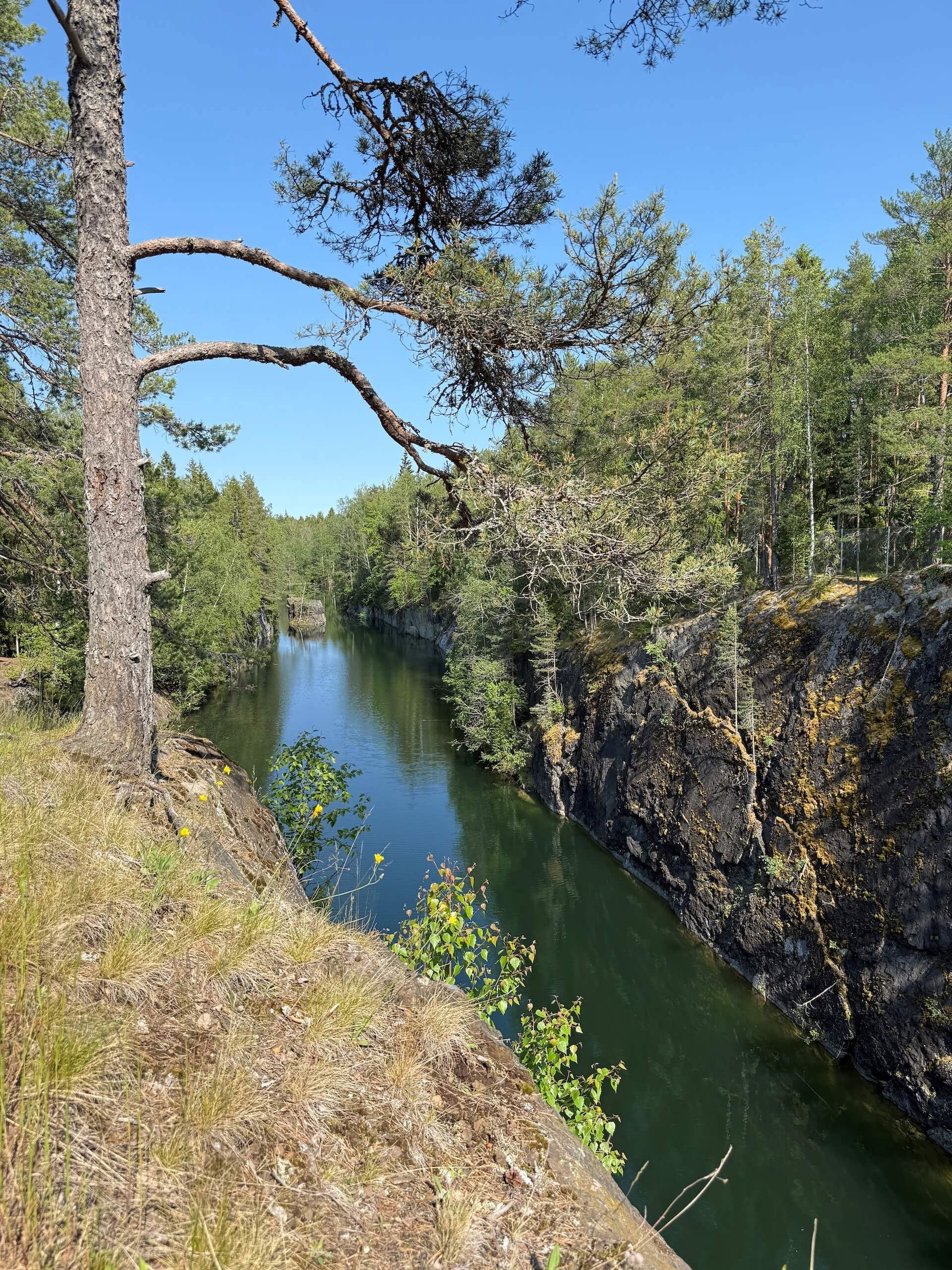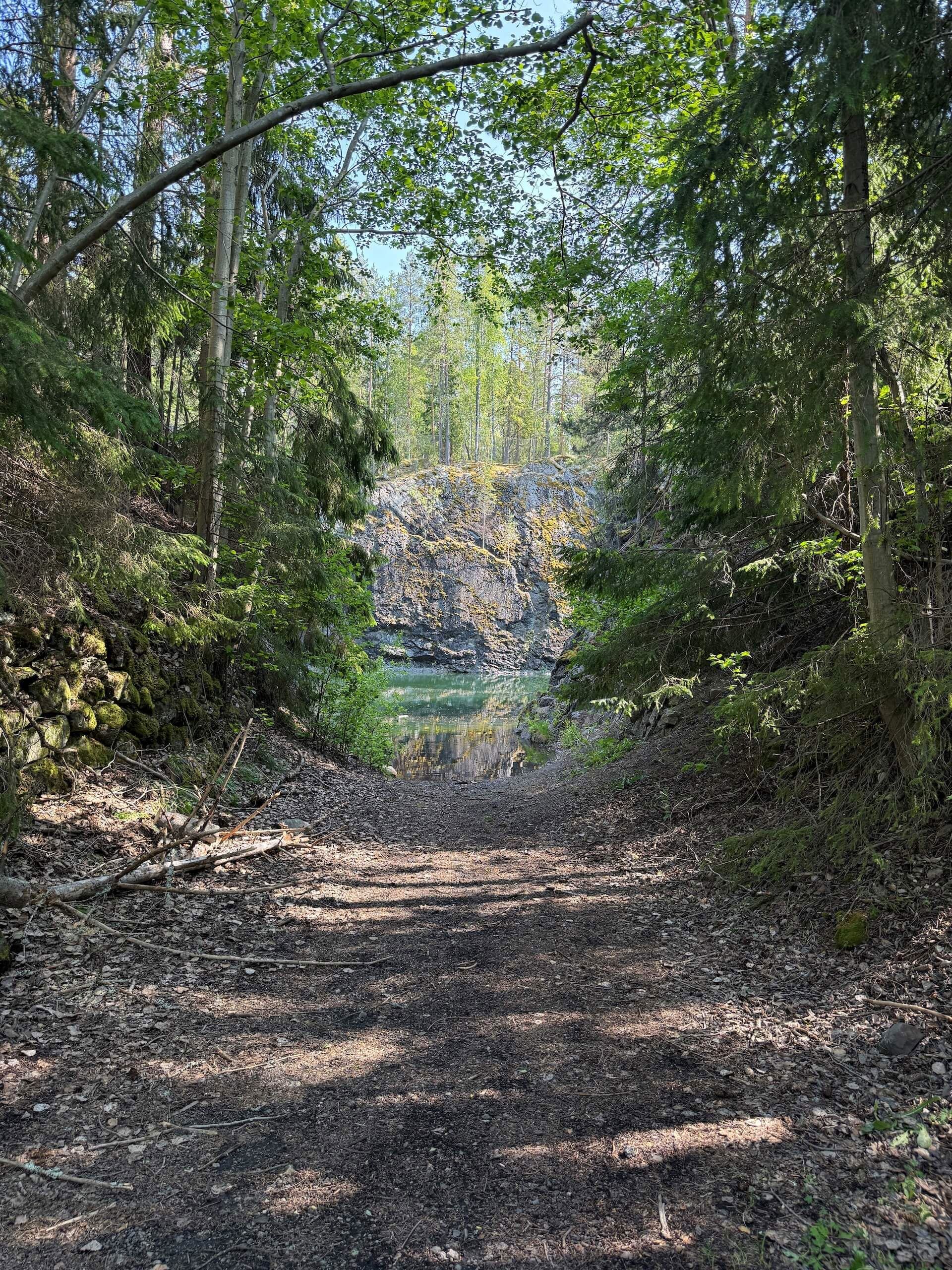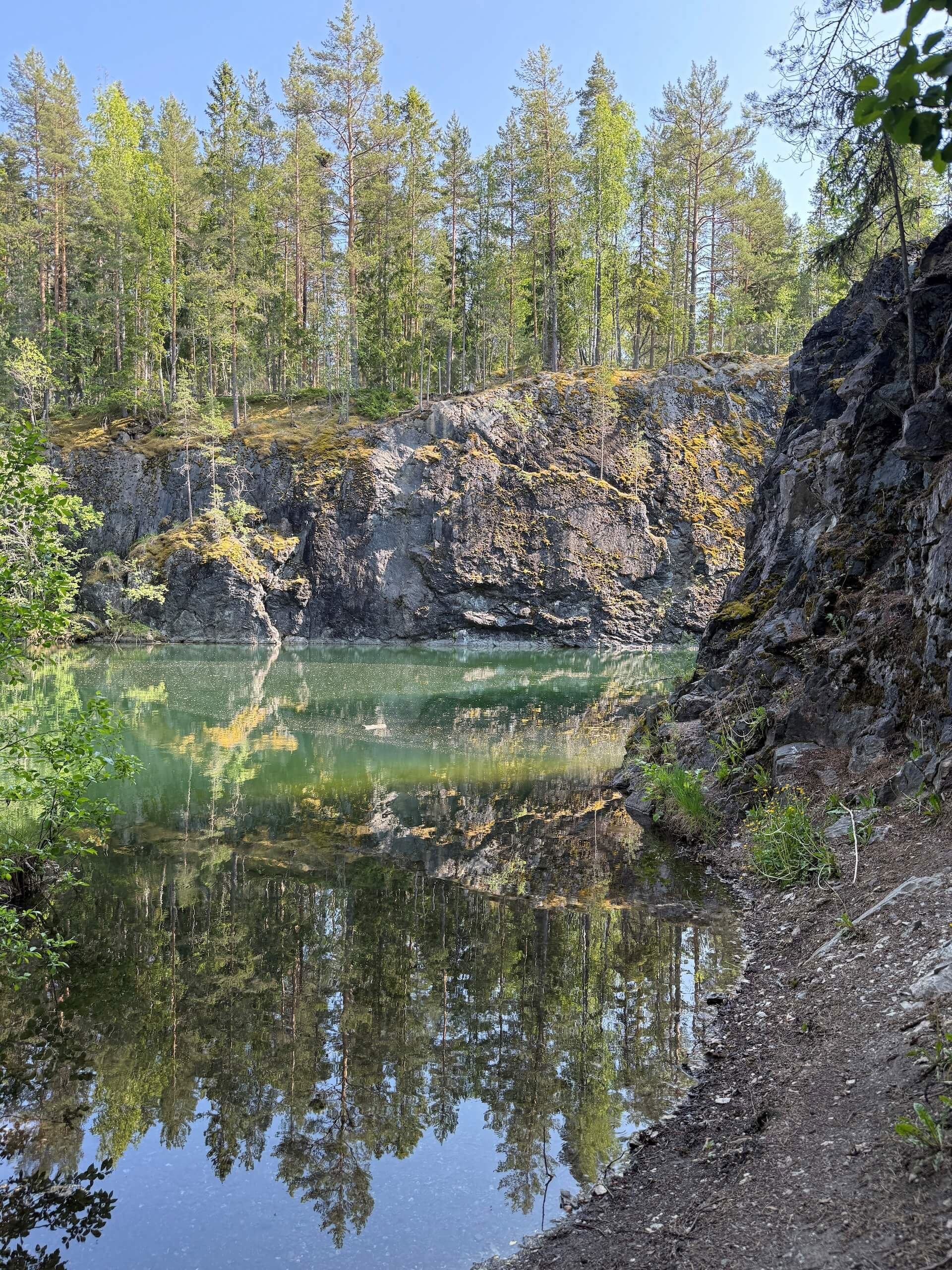 Ett stilla vatten i dramatiska klippor – mitt i skogen väntar ett stycke industrihistoria som blivit naturens egen spegel.