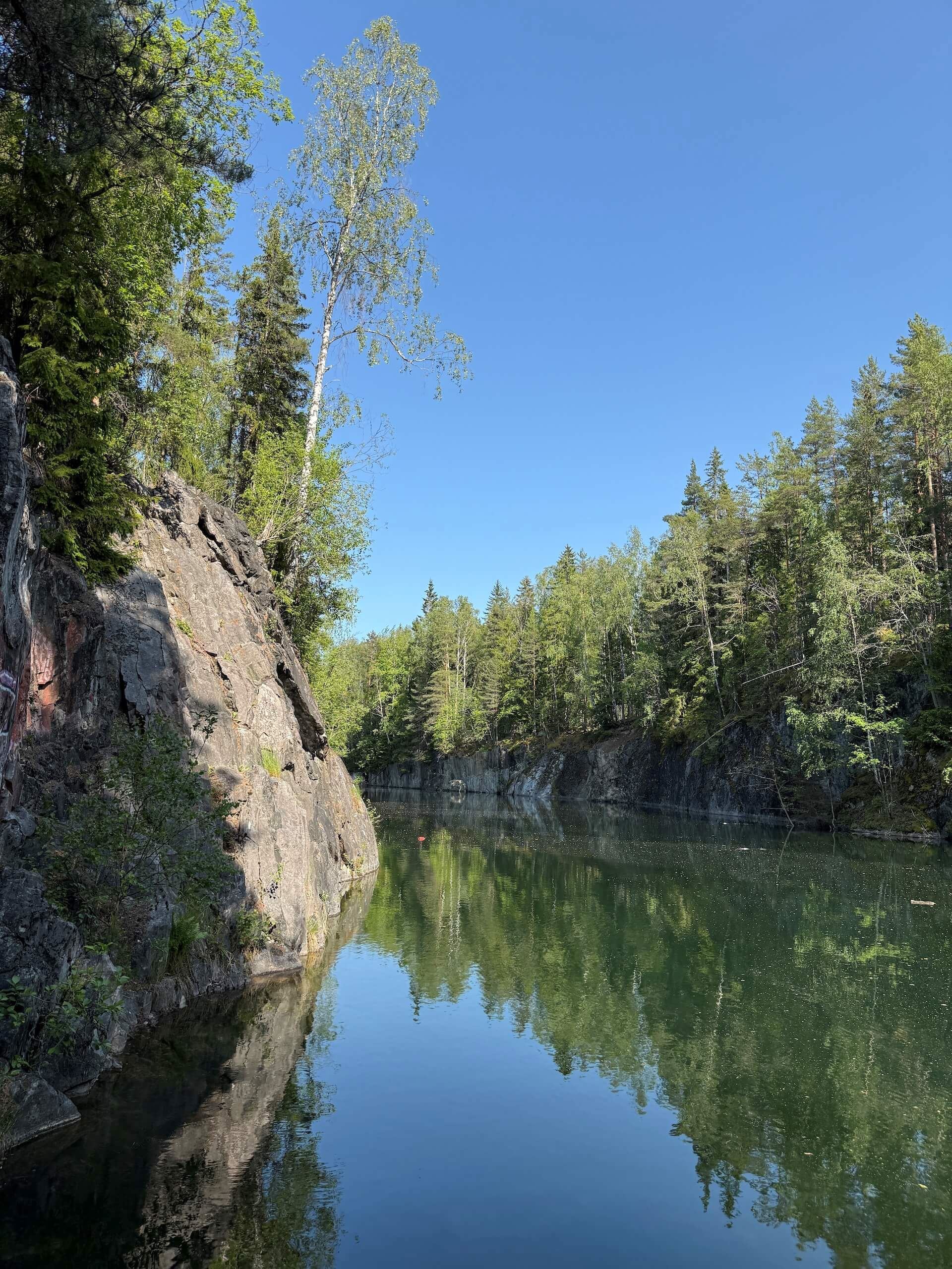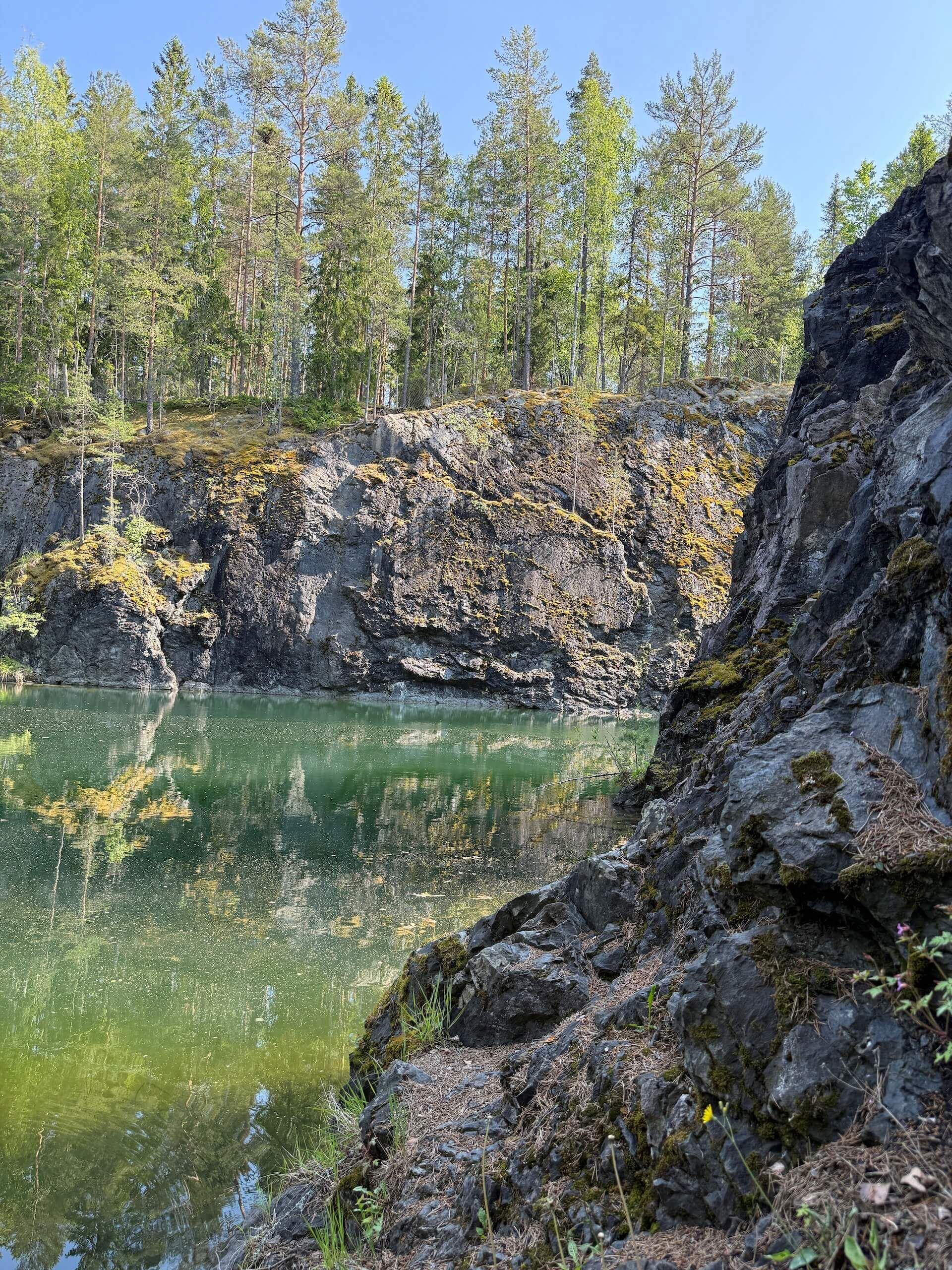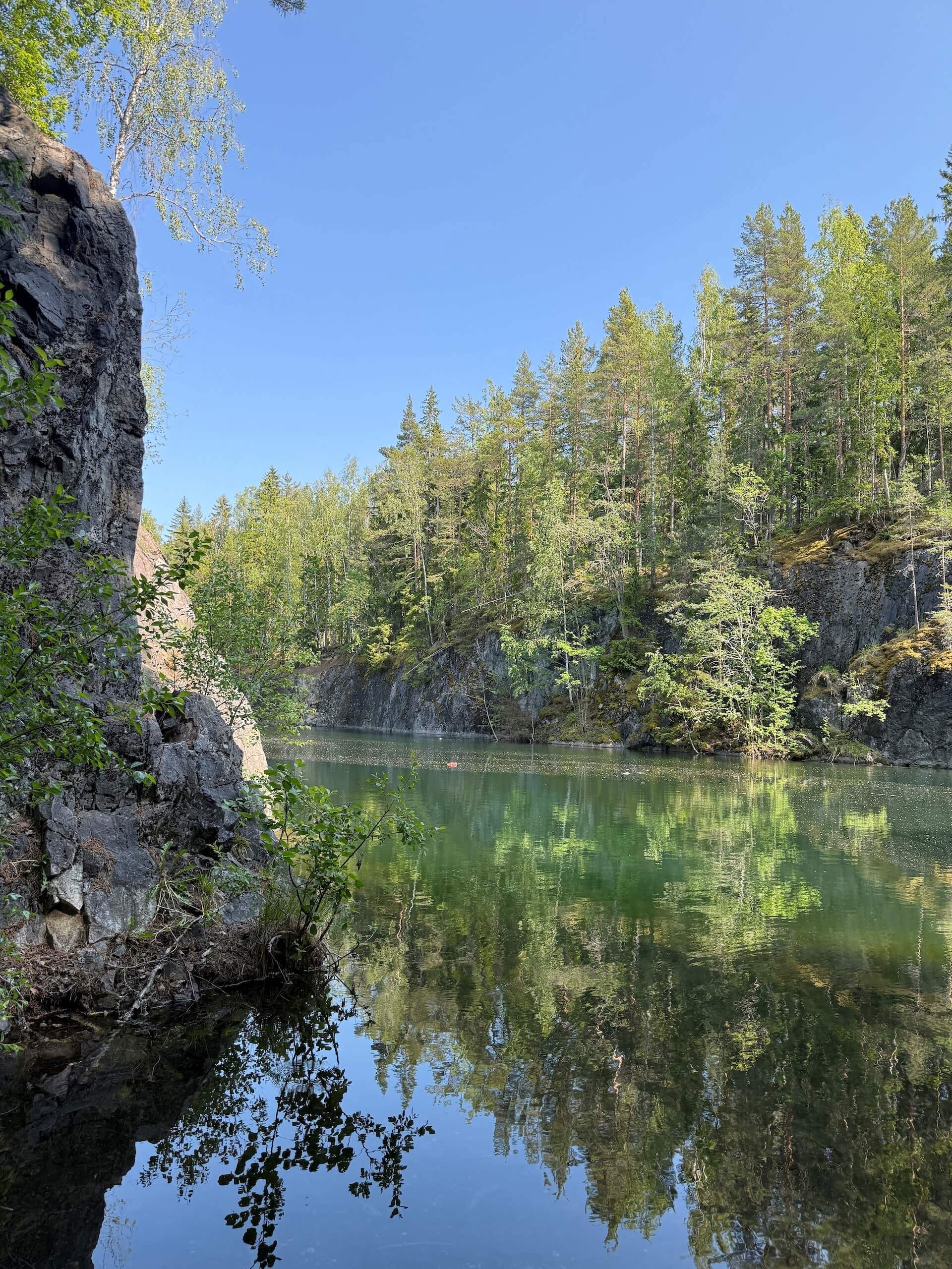 Ett stilla vatten i dramatiska klippor – mitt i skogen väntar ett stycke industrihistoria som blivit naturens egen spegel.