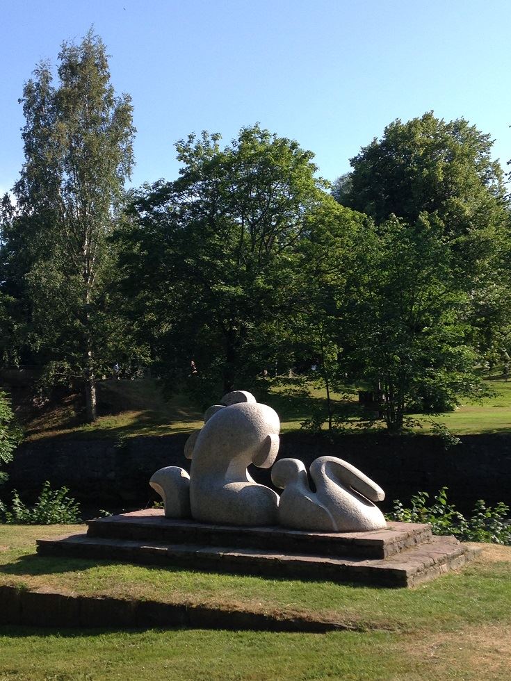 Konstnär: Staffan Nihlén År: 1994, donation från GDJ-fonden. Aurora är (i den klassiska myten) morgonrodnadens gudinna som i gryningen kör sitt spann över himlaytan och förebådar den nya dagen. Skulpturen är beställd till och formad för just denna plats. Den består av tre tunga former, sågade ur samma block, enkla former som anknyter till mänsklig anatomi. En stor kropp vrider sig kraftfullt upp ur skulpturens mitt, en främre del sätter farten framåt, en bakre del formar ett vinkade svar på vattnets virvlar. Skulpturen bildar en helhet, vars rörelse fortplantas genom alla dess delar likt åvattnets ständiga forsande. Vattenreflexerna fångas upp i den hårda granitens mjukt behandlade yta. Text: Märit Ehn ur boken Skulpturstaden Gävle – en vägledning (1996).