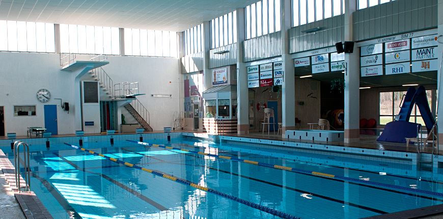 Förutom 25 m. inomhusbassäng, barnbassänger, bubbelpool och café finns också en idrottshall som innehåller sporthall och styrkehallar.