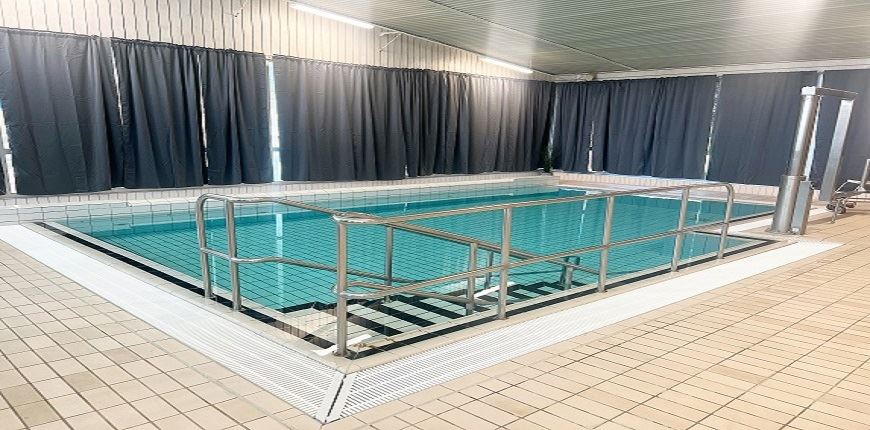 I badhuset finns en stor bassäng för motionssim och trampoliner samt en liten bassäng för mindre barn att bada i. Det finns också bubbelpool.