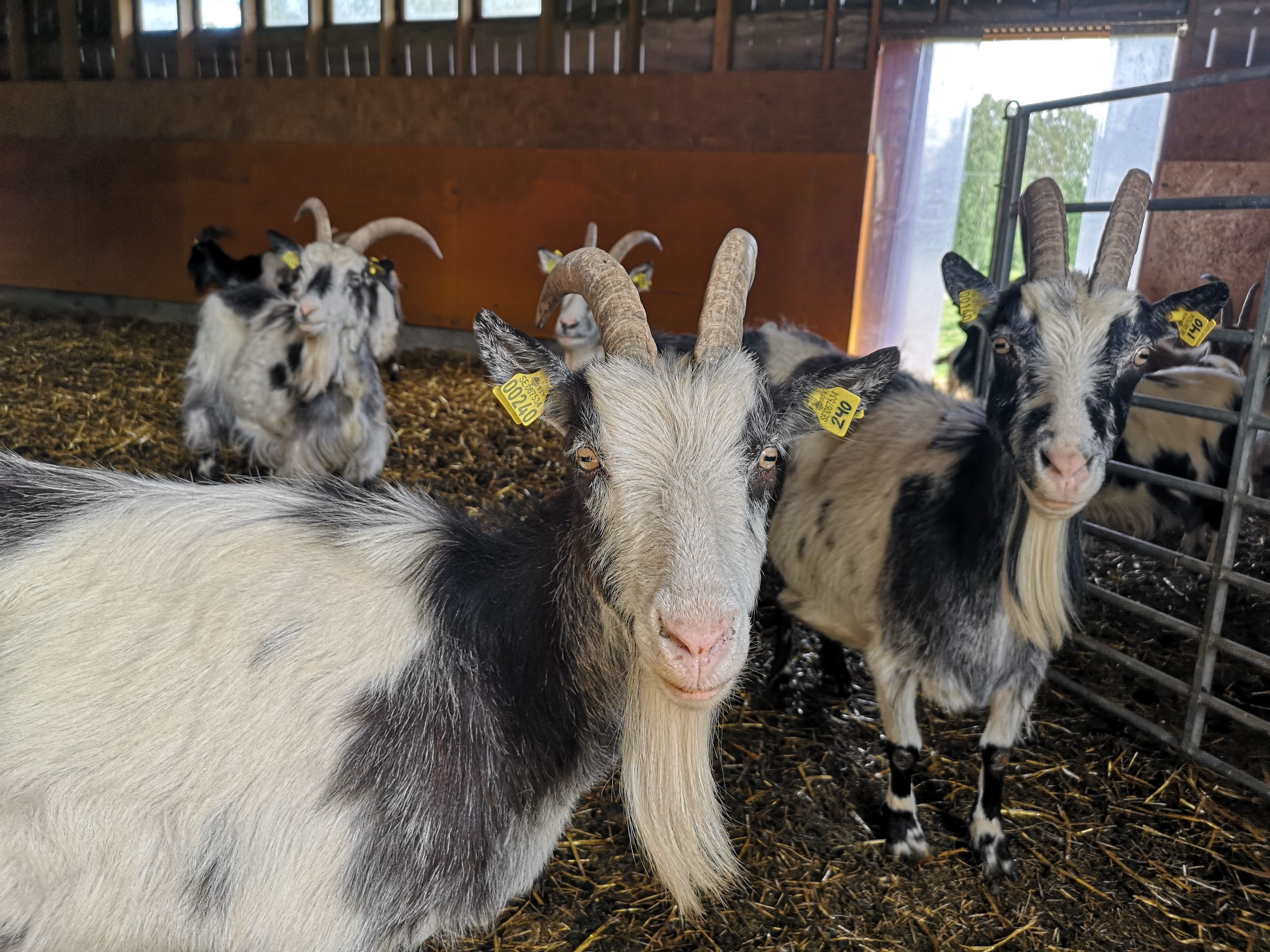 Här hittar du bin, getter, några gårdshästar, Highland Cattle, Hedemorahöns, några ankor, påfåglar, hund och katter förstås. Alla djuren är “anställda" på gården och har sina uppgifter.